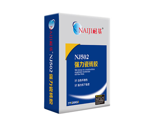 NJ502強力瓷磚膠是一種強力抗下墜型瓷磚膠粘劑,可以粘貼吸水率較低和沒有寬縫的外墻磚。